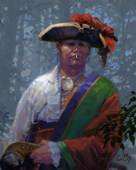 John Buxton grew up in Oxford, NC, but has lived near Pittsburgh since 1963, where he spent 31 years as a commercial illustrator. Perhaps the rolling hills of western Pennsylvania and the echo of all that had taken place within those hills inspired John Buxton to start painting scenes from the 18th century.