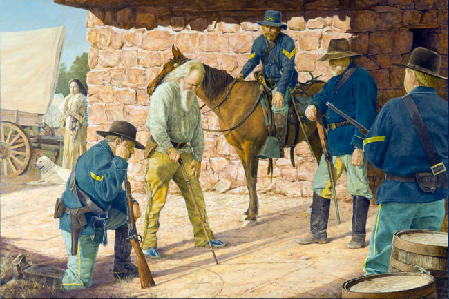 “I’m inspired to portray characters from American history - native people, explorers, and pioneers who settled and crossed this continent, and their interaction. They represent the true grit and individual spirit that molded this country. The scenes and characters that I paint hopefully make the viewer more aware of their contributions.”